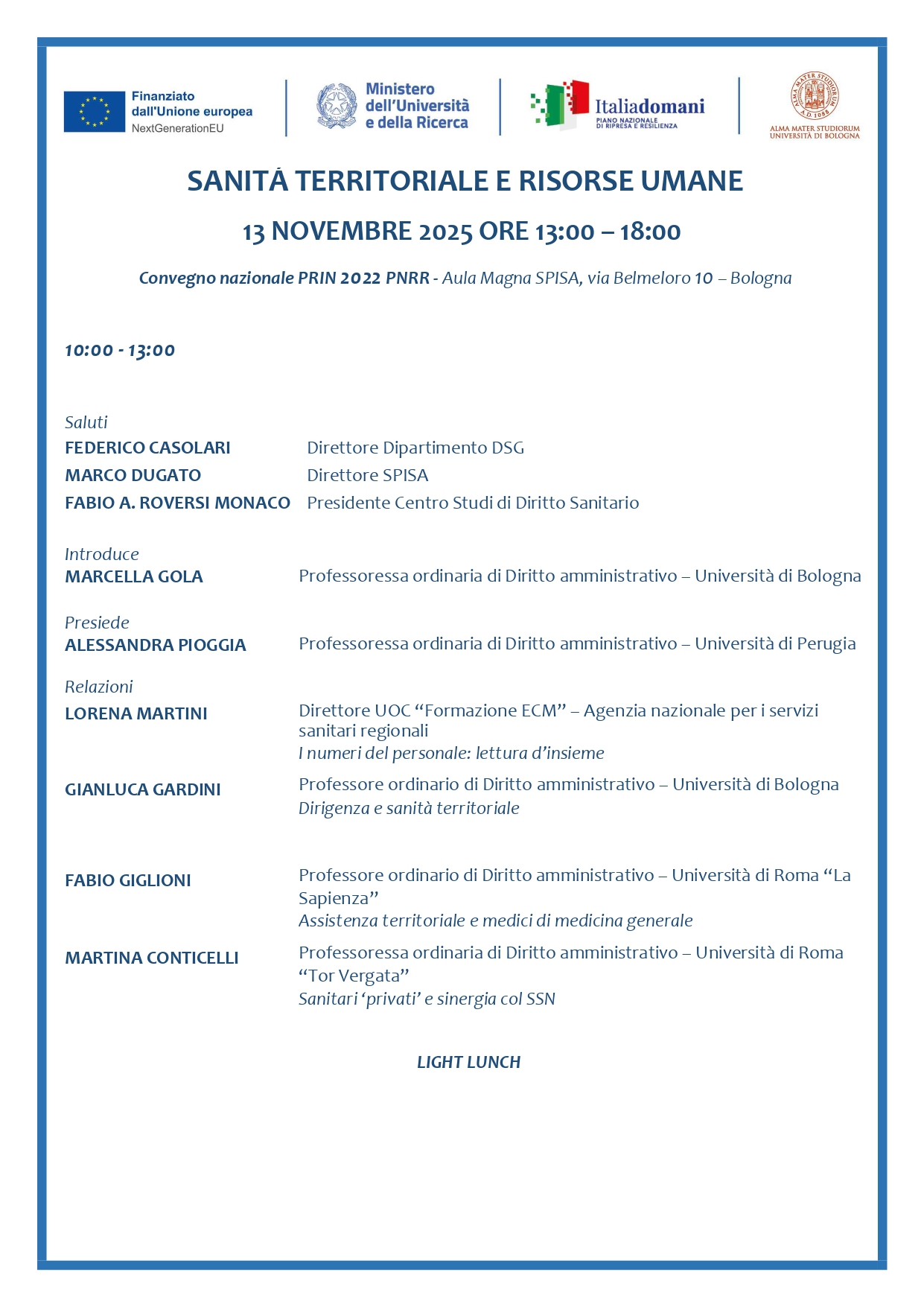 Locandina Convegno 13 novembre 2025 CSDSConvegno nazionale PRIN 2022 PNRR “Sanità terriotriale...